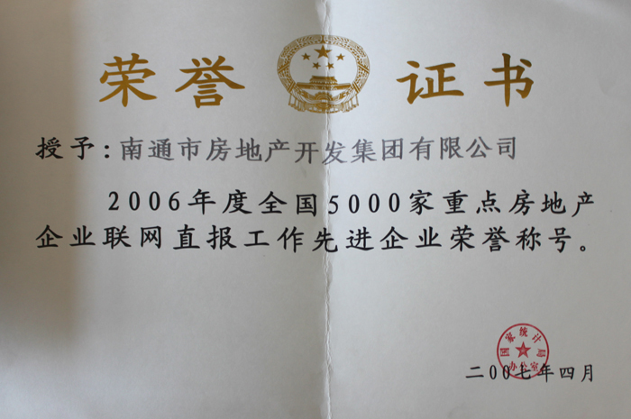 2006全國重點房地產(chǎn)企業(yè)聯(lián)網(wǎng)直報先進企業(yè)